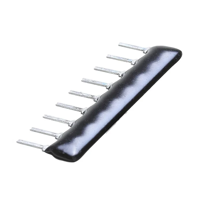 It is a 1K Ohm Through Hole Resistor Network. The resistor array is a passive nine-terminal electrical component that serves as eight 1K ohms resistances and one common ground.