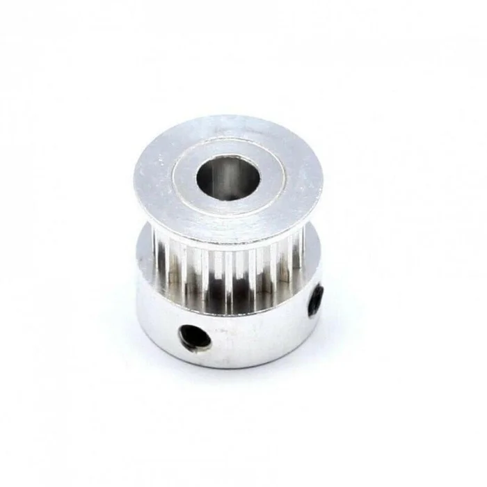 This is GT2-6mm Belt Width 20Teeth 5mm Bore Timing Pulley with 20Teeth, 4mm bore diameter.Aluminum 16T GT2 timing pulley has a high-quality shiny surface appearance and robust construction, longer working life. The rounded teeth of this tooth and belt are engaged together longer providing a smoother transition between teeth, good performance for 3D printers.Applications include a 3D printer, CNC and other robotics with timing belt pulley, GT2 timing belt pulley system especially suited for linear movement and positioning, and its good for GT2 6mm Width Belt.