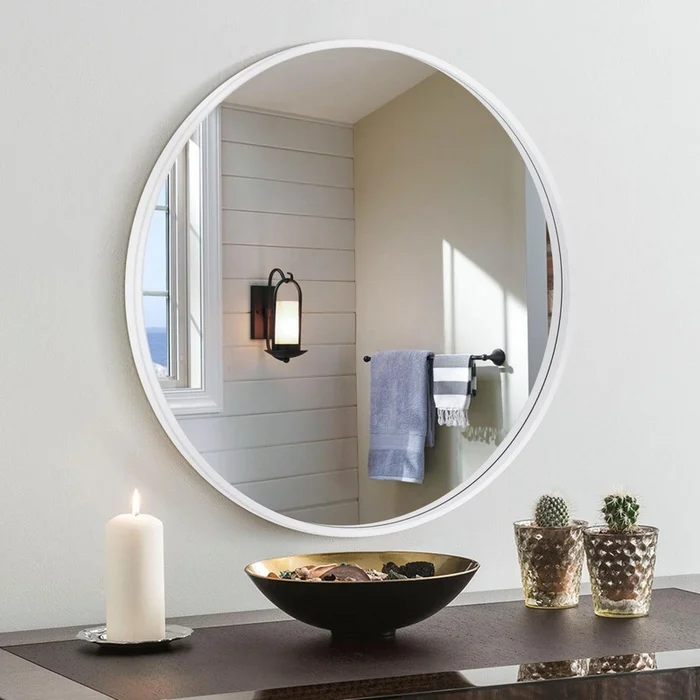 Arcus 24 X 24 Hand Crafted Round Mirror – White|Miroir rond Arcus 24po x 24po fabriqu la main – banc