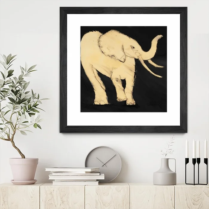 Baby Elephant Matted and Framed Black 30×30 Wall Art|uvre dart murale encadre noire et mate Baby Elephant 30×30