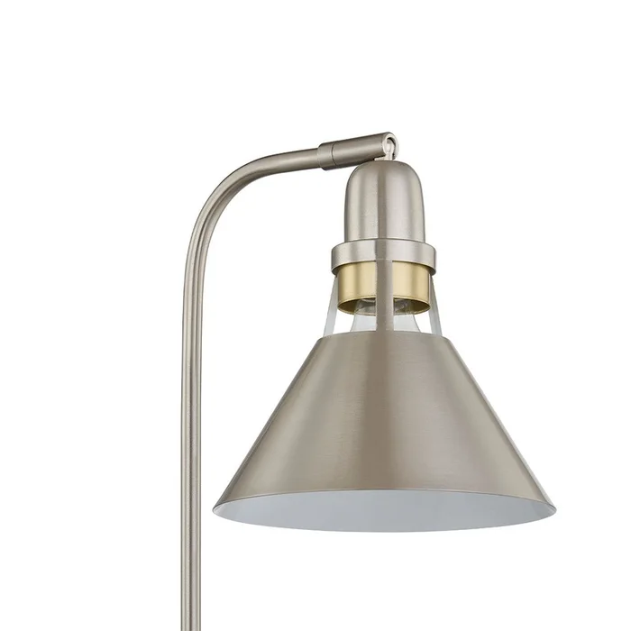 Elevate your space with the fusion of style and functionality found in this task lamp. Crafted from premium metal, its robust design harmonizes effortlessly with any decor. Illuminate your tasks using the adjustable swivel head, directing light where needed. With its industrial charm in brushed nickel and accents of gold, it’s a statement piece that introduces both light and romance to your surroundings. Redefine your space make our task lamp yours today.