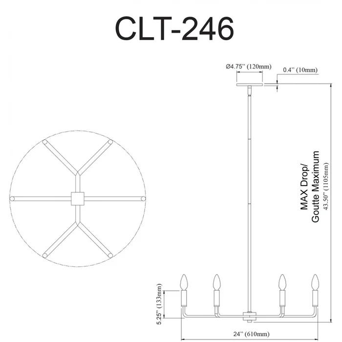 Dainolite Contemporary Colette Chandelier in Painted Matte Black Metal for the Ceiling with 6 bulb, E12 socket base 60 Watts max Dimmable and UL Approved for Damp Location with a 1 Year warranty. Great for Kitchen, Dining, Foyer/Hall rooms and Commercial use. Features include , Height Adjustable, Sloped Ceiling Adaptable Easy Assembly and Installation