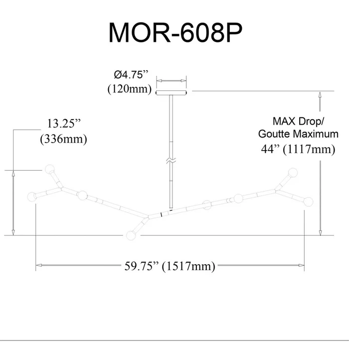 Dainolite Transitional Morgan Pendant in Painted Matte Black Metal for the Ceiling with 8 bulb, E12 socket base 60 Watts max Dimmable and UL Approved for Damp Location with a 1 Year Limited warranty. Great for Living, Dining, Foyer/Hall rooms and Commercial use. Features include , Easy Assembly and Installation, Height Adjustable LED Compatible