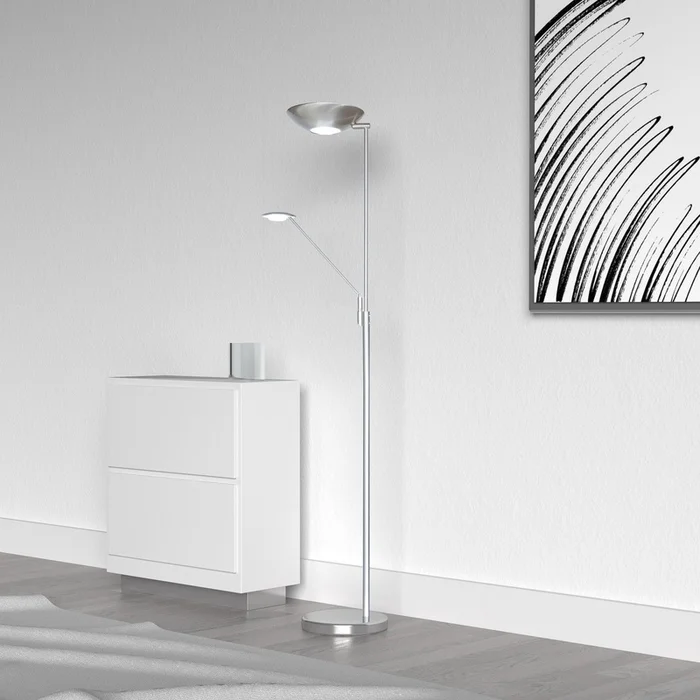 Adding welcome light in a smooth contemporary aesthetic, the LED Floor Lamp collection features a distinctive profile. The design features an integrated LED light. LED fixtures produce light at up to 90 percent better efficiency than incandescent lighting. The metal base and rod curves back slightly for the simple configuration, splitting into two arms for the mother/son light. The light housing directs illumination down from above, making it ideal for reading, studying or work. Available in both a simple and mother/son configuration, it’s a stylish and practical solution to any dark corners of your home or office.