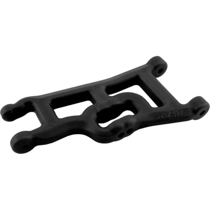 Nearly 25% lighter than stock Stronger material resists flexing and breaking Increased clearance in outer area of arms Overview RPM front A-arms for the Traxxas Slash, e-Rustler & e-Stampede are built to withstand some of the toughest abuse. Incredibly, we were able to shave some unwanted unsprung weight as well. RPM Front A-arms are nearly 25% lighter than stock versions of the same A-arms, yet the RPM versions are backed with our world-renowned breakage warranty. Additionally, we’ve increased clearance areas in the outer portion of the A-arms to allow increased droop travel when used in conjunction with RPM oversized bearing carriers (RPM #80372 & #80382). RPM front A-arms for the Traxxas Slash, e-Rustler & e-Stampede are sold in pairs and are available in either black or blue. These A-arms are molded with what is fast becoming an RPM trademark design of angled leading and trailing edges to reduce frontal edge mass and improve the a-arm’s ability to ride up and over tall obstacles instead of slamming into them. RPM A-arms are extremely rigid for superior ride and stability over the roughest tracks and terrain.