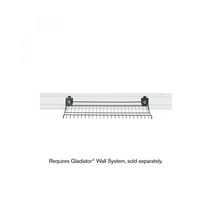 Shoe storage is made easy with The Gladiator 30 Shoe Rack. The heavy-duty welded steel shelf keep muddy shoes and boots off the floor and can be easily relocated onto Gladiator Wall Systems. Friction lock tabs keep this shoe rack secured to the wall.