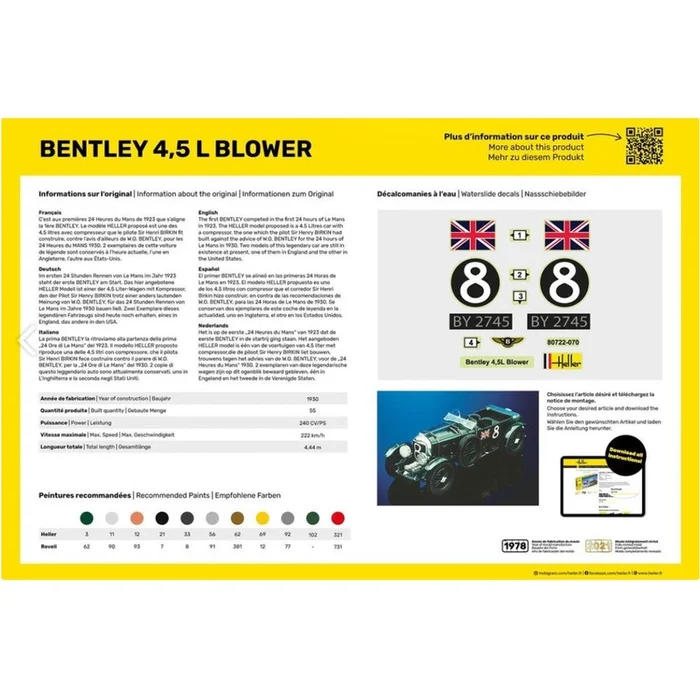 in 1923. The HELLER model proposed is a 4.5 Litres car with a compressor, the one which the pilot Sir Henry BIRKIN had built against the advice of W.O. BENTLEY for the 24 hours of Le Mans in 1930. Two models of this legendary car are still in existence at present, one of them in England and the other in the United States.
