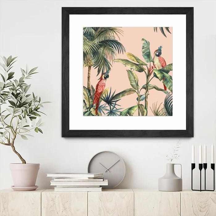 Tropicano Ii Matted and Framed Black 36×36 Wall Art|uvre dart murale encadre noire et mate Tropicano Ii 36×36
